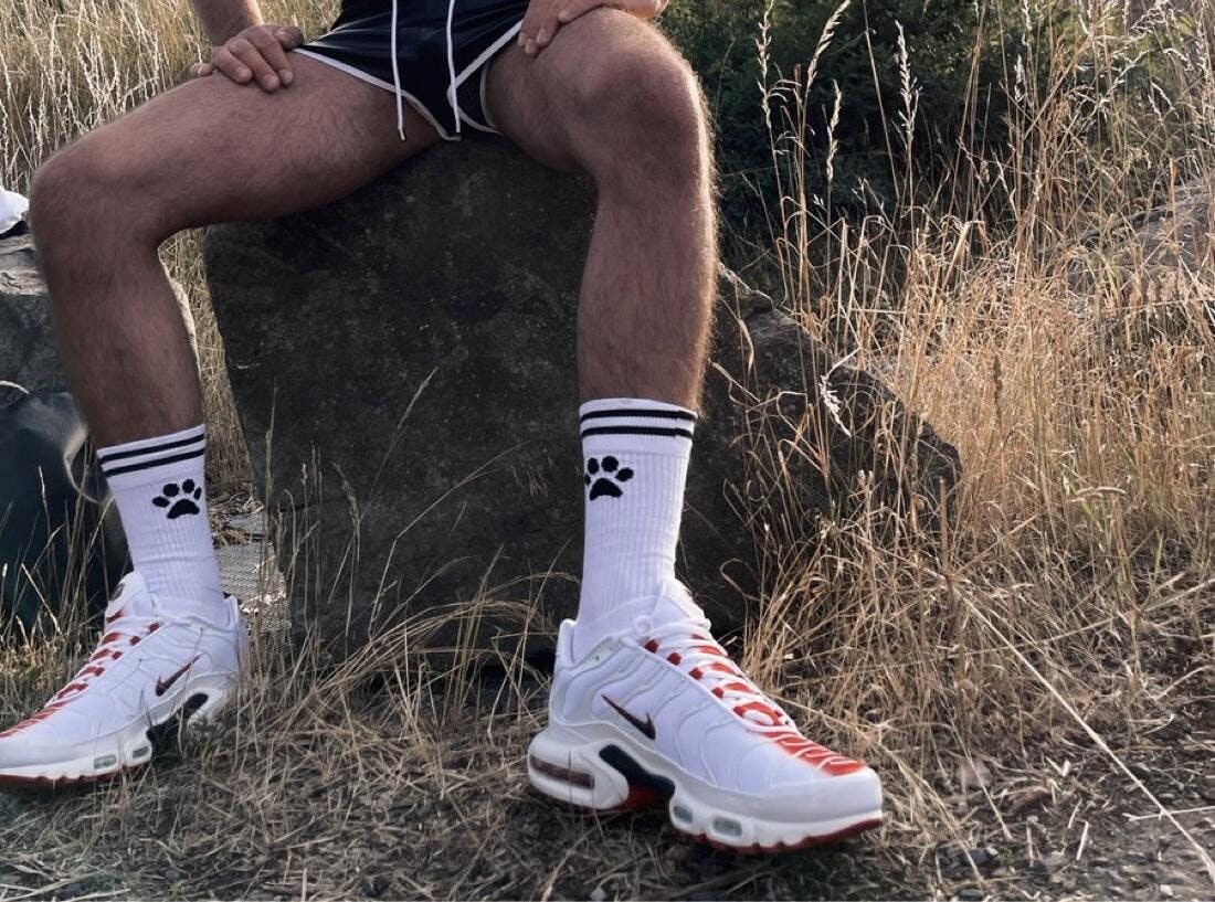 Pup Ceyx danke! Weiße PUPPY Socks sehen mega süß aus – aber das Beste kommt erst, wenn sie richtig vollgeschwitzt und pup-approved sind 😏.